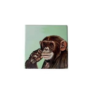 Ceramic Magnet with a vibrant painting of a Chimpanzee. 7.5cm X 7.5cm