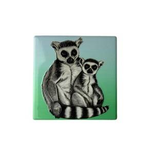 Ceramic Magnet with a vibrant ombre painting of a Ring Tailed Lemur. 7.5cm X 7.5cm